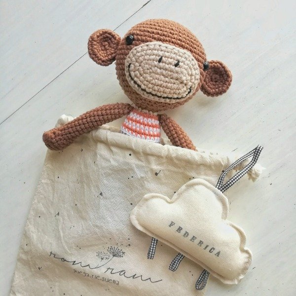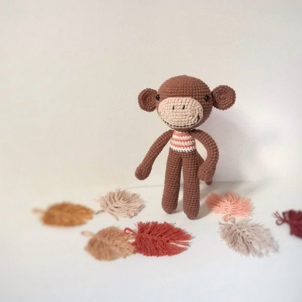 ❤️ El pequeño Jacques es un mono tejido al crochet 100% a mano 🙌🏻 en hilo de algodón. Su interior es de vellón siliconado. Sus ojos son ojos de seguridad para soportar hasta el más exigente compañero de juegos y tiene detalles bordados a mano que le dan su expresión de alegría.